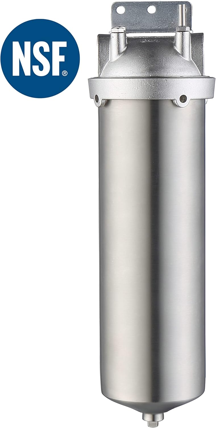 Amwater NSF/ANSI 42 ertification Stainless Steel Filter Housing for Filter Cartridge, Water Filter Housing for Whole House Water Purification of Stainless Steel 304 (10 C Housing-1NPT)